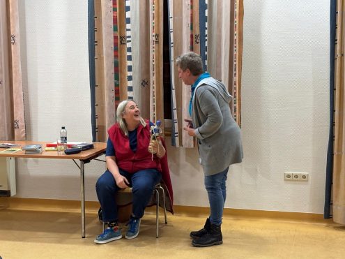 Dabei waren neben der schwäbischen ausführlichen Erklärung einer Salatschleuder und der herausfordernden Bedienung einer automatisierten Bahnhofstoilette, auch noch eine chaotische Unterrichtsstunde und die Frage dabei: „Fragt man jetzt im Baumarkt lieber nach einer Ringschraube oder nach einer Schelle?“
